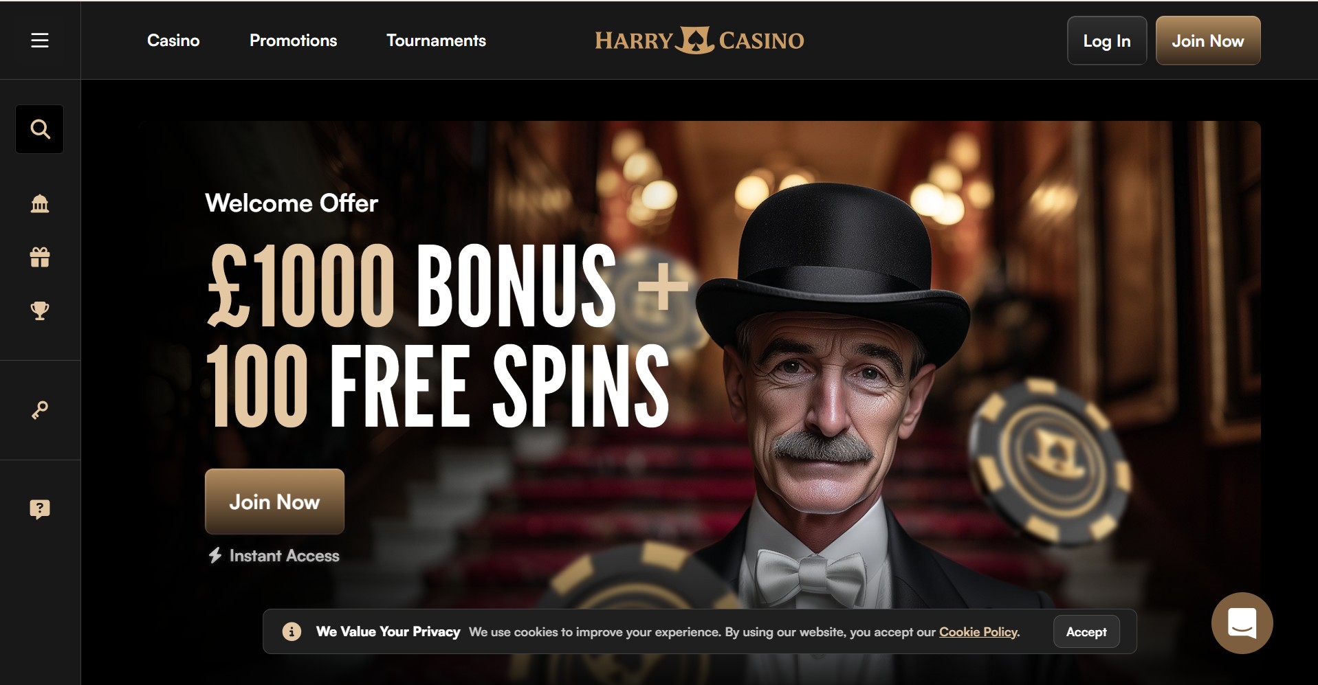 Harry Casino Review for UK Players – Up to £1,000 + 100 Free Spins